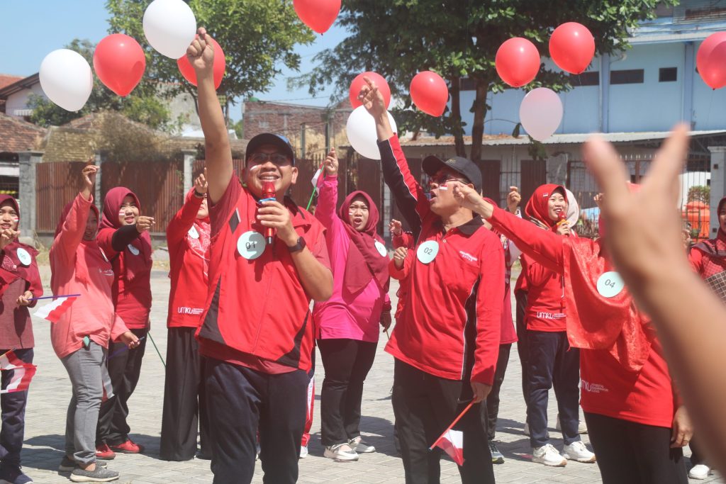 Kudus(17/8/23)Universitas Muhammadiyah Kudus meriahkan HUT RI ke-78 dengan semangat kekompakan. Acara tersebut diawali dengan pelepasan balon merah putih ke langit Kudus. Tepat di halaman utama gedung Crystal Building UMKU ratusan balon dilepas oleh Rektor dan Civitas Akademika UMKU.